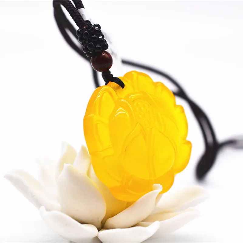 ОписаниеНатуральный желтый халцедон цветок ожерелье кулон