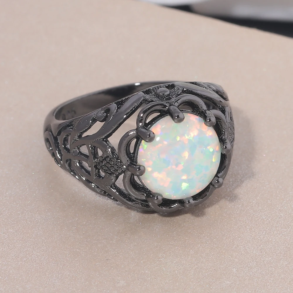 Кольцо CiNily из белого опала с огненным блеском цвет черного золота оптовая продажа модное женское украшение размеры 6-10 OJ8413 - купить