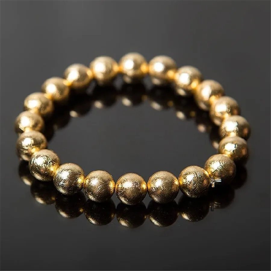 Браслеты с позолоченными круглыми бусинами из натурального железа никеля метеорита размером 6 мм - купить