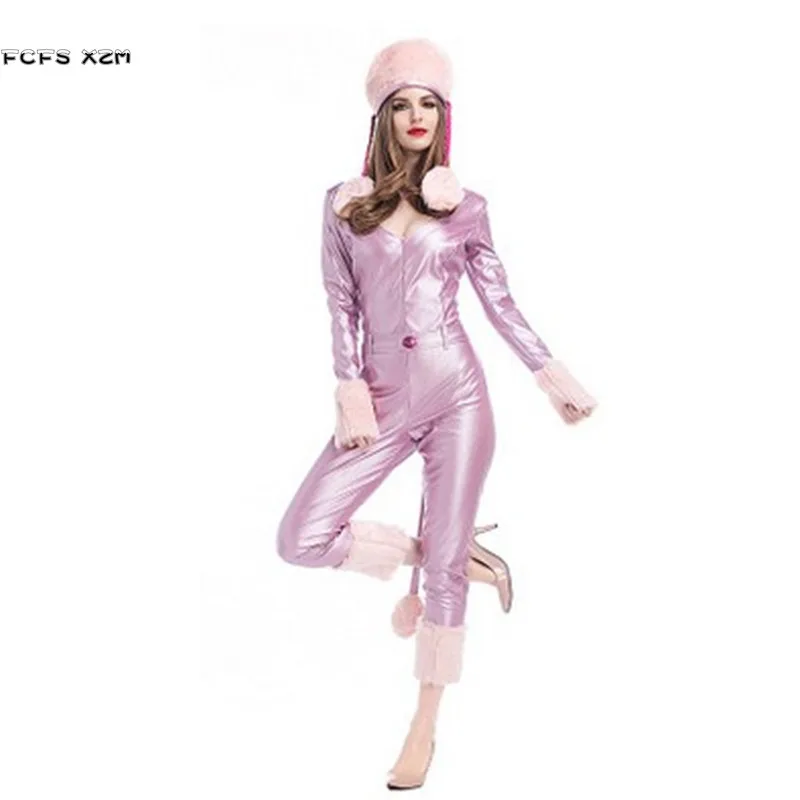 Купить Purple Faux Leather Halloween Catwoman Costume For Women kitty Animal Cosplays Female Winter pajamas Purim Christmas party dress |