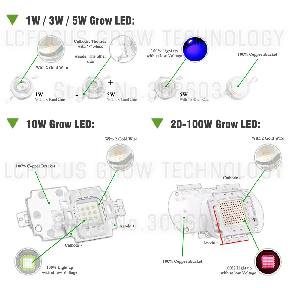Высокая мощность 3 Вт Светодиодный светильник для выращивания полный спектр 400-840nm DIY светодиодный светильник для выращивания для гидропоники питомника комнатное растение для выращивания фруктов и овощейНазад в наш магазин (нажмите)