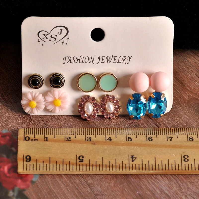 Купить New antique women jewelry wholesale Girls Birthday Party ear nail pink green powder with 6 /set ring free shipping | Украшения и