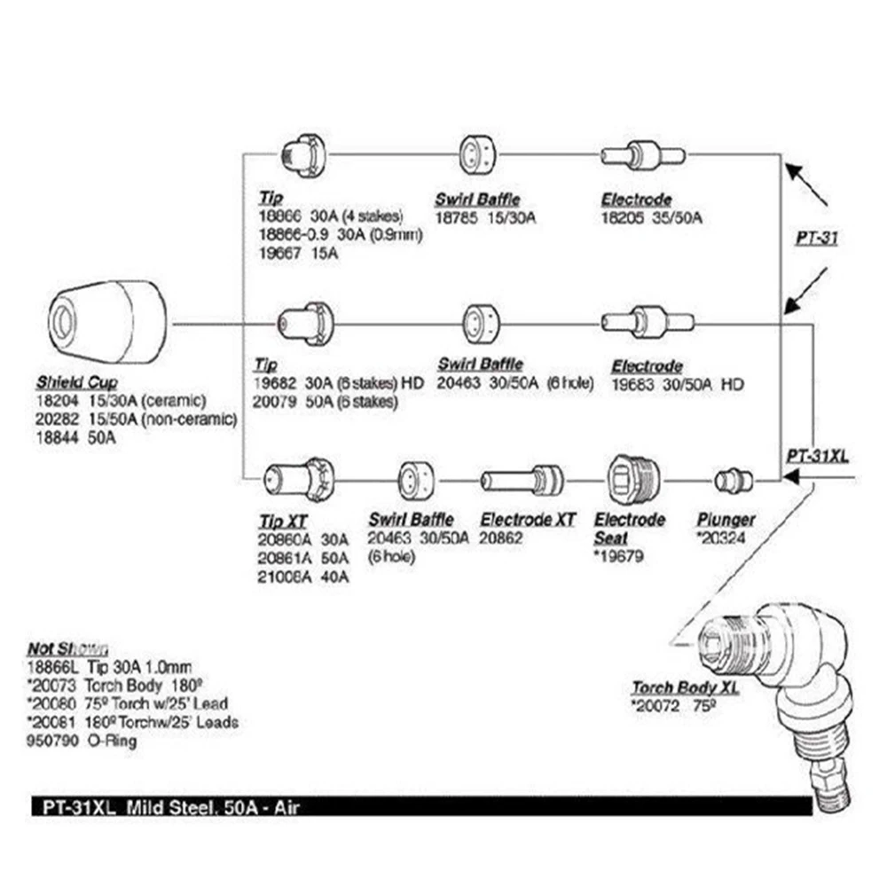 Расходные материалы могут работать с ESAB/L-TEC PT-31, JG-40 и WSD-LG40 фонарь для резки. Эти факелы для станков плазменной резки, таких как CUT-40, CUT-40D, LGK-40, CUT50,CUT50P,CT312, CT312D, CT416, CT-416D, CT518, CT518D, Super160, Super160P и т. Д.
