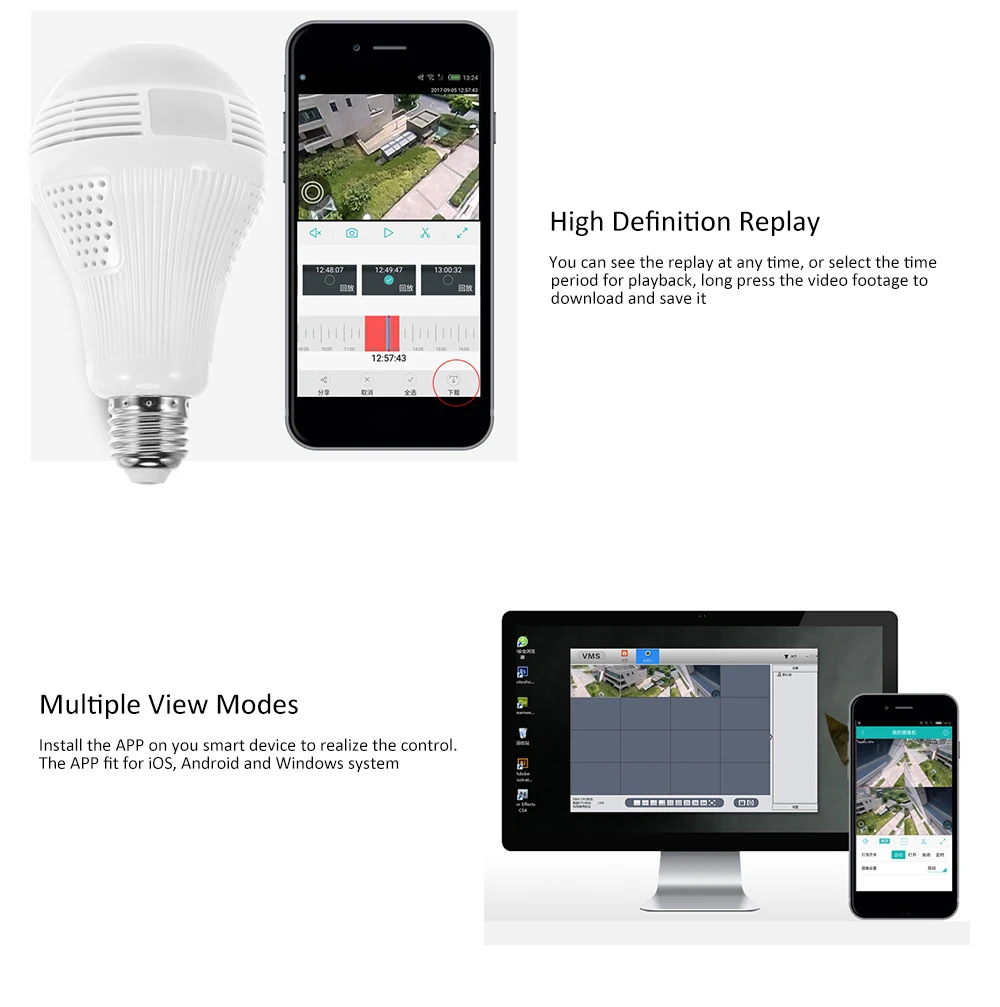 Отзывы о 960 P Беспроводной панорамный ip 3D VR Камера WI-FI E27 лампочки Fisheye наблюдения 360