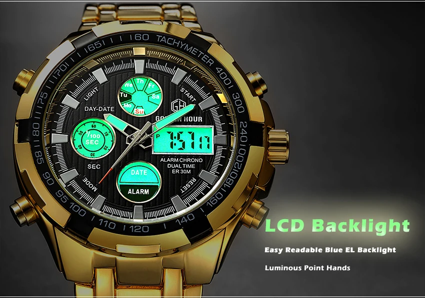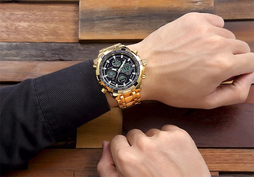 Роскошные мужские кварцевые часы Goldenhour деловые с подсветкой и отображением - купить