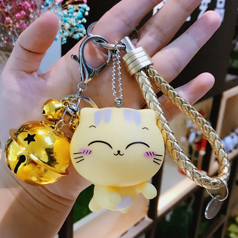 Купить 2018 Cute Cat Bell Keychain Key ring for Women Bag Purse Charm Jewelry Car chian Holder Pendant | Chains