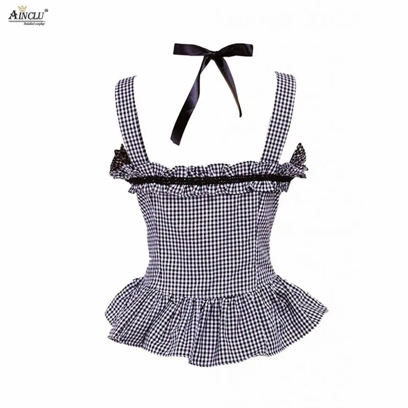 Отзывы о Ainclu XS-XXL Женская хлопковая черно-белая без рукавов Классическая Лолита Топ/блузка