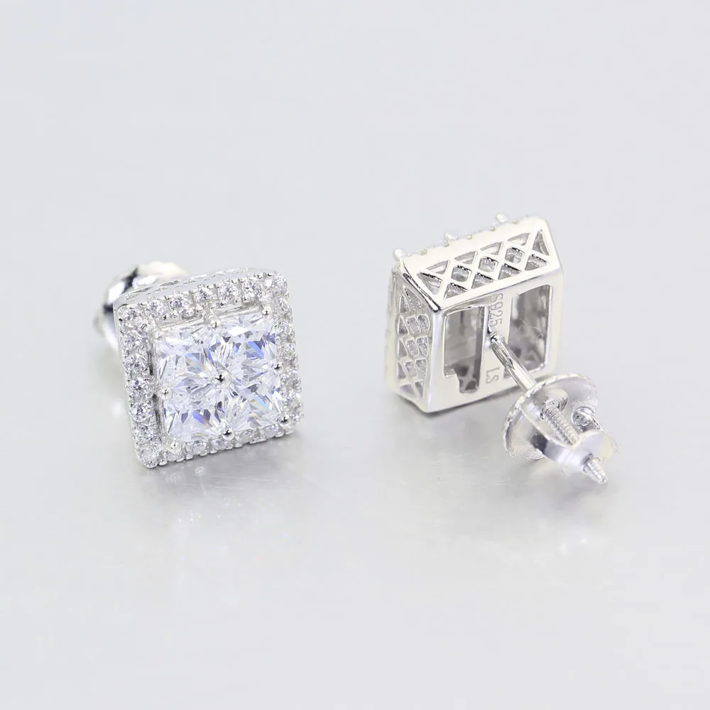 Популярные серьги для мужчин OMYFUN, серьги-гвоздики в стиле хип-хоп с кубическим цирконием, квадратные геометрические серьги из стерлингового серебра 925 пробы золотого цвета