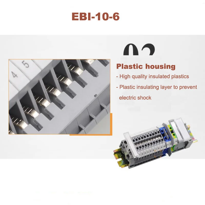 WELCOME TO VISIT OUR STORE.If you need to order different quantity or items ,please contact us by e-mail. And We will send the relevant link to you.More quantity, cheaper price. Thank you!EBI10-6 Side Plug-in Connector Din Rail Terminal block UK2.5B UK5N UDK4 UKK5 UK5-TWIN Centershort circuit connection strip