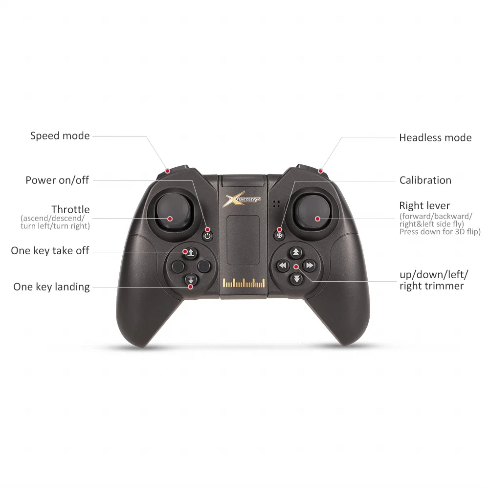 Функции: боковой полет, поворот влево/вправо, вверх/вниз, вперед/назад, высокая/низкая скорость, 3D опрокидывание, камера 2.0MP, Wifi FPV, контроль гравитации, Безголовый режим, удержания высоты
