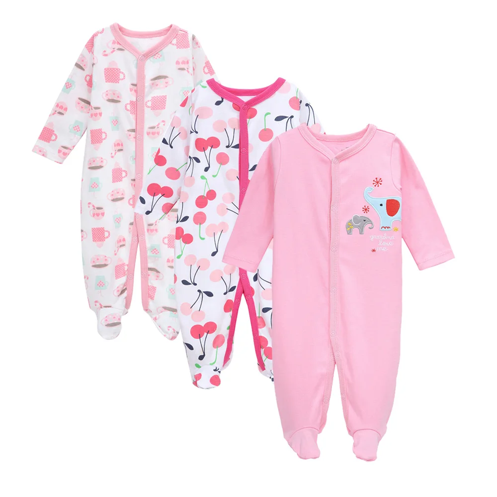 3 шт./лот 100% хлопок Детский комбинезон с длинными рукавами детские пижамы принтом - купить