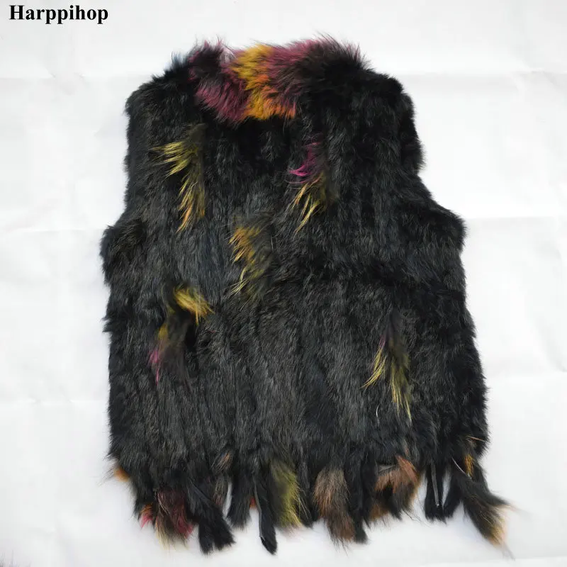 Женский меховой жилет Зимний вязаный из натурального кроличьего меха с ярким - купить