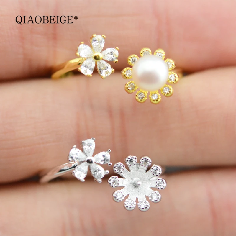 Купить Qiaoбежевое серебряное кольцо 925 сделай сам маленькие жемчужные фитинги цветочные