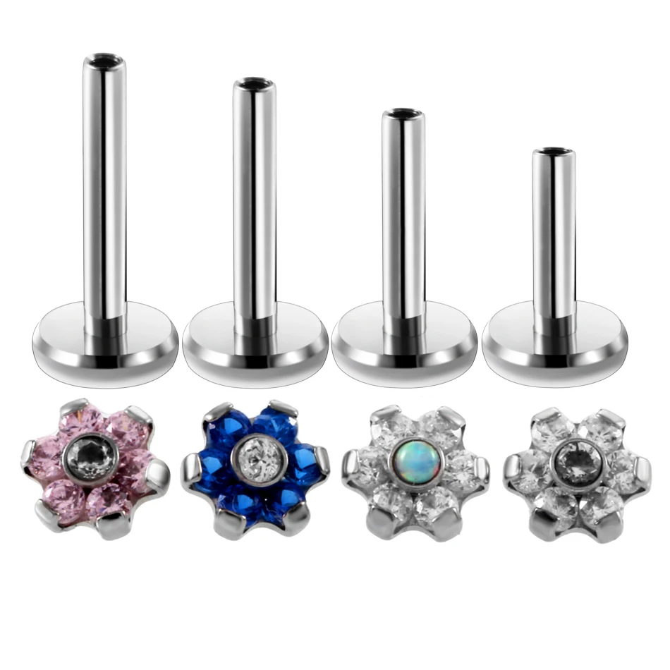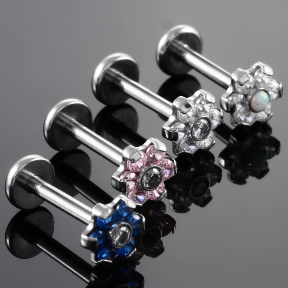Купить Набор стальных Зубцов 1 шт. кольца для губ с кристаллами и цирконием в виде цветов