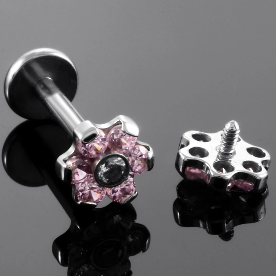 Набор стальных Зубцов 1 шт. кольца для губ с кристаллами и цирконием в виде цветов - купить