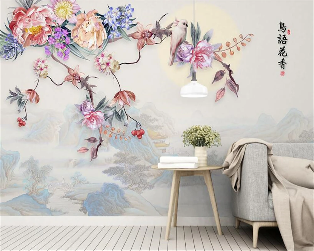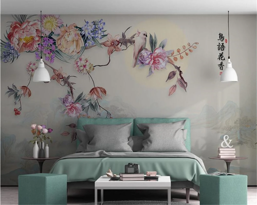 Beibehang новые китайские Модные индивидуальные шелковые обои 3d ручная роспись цветы - купить