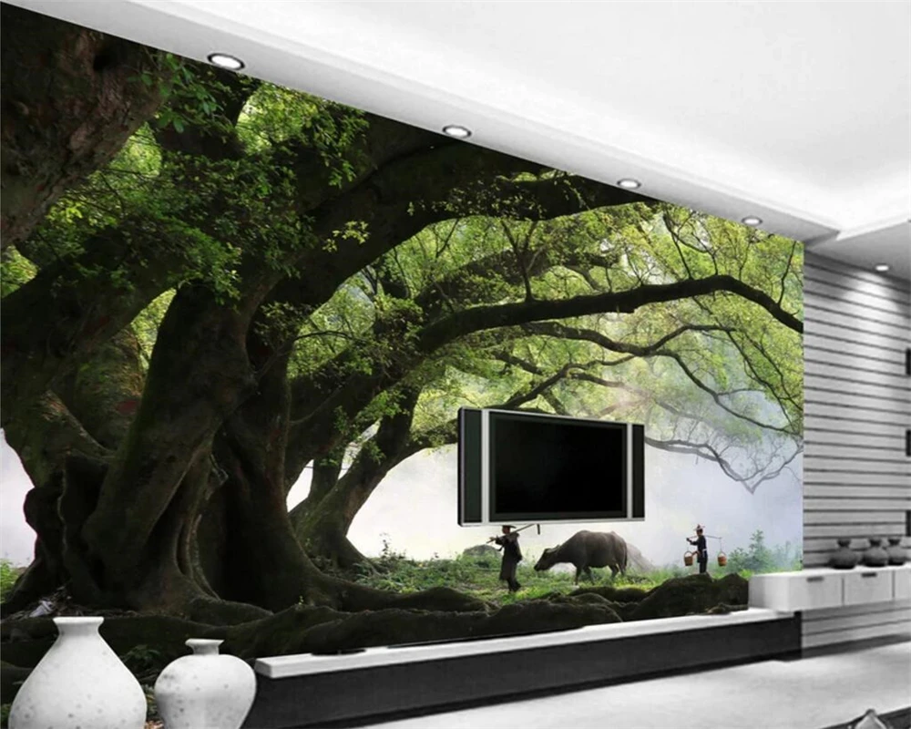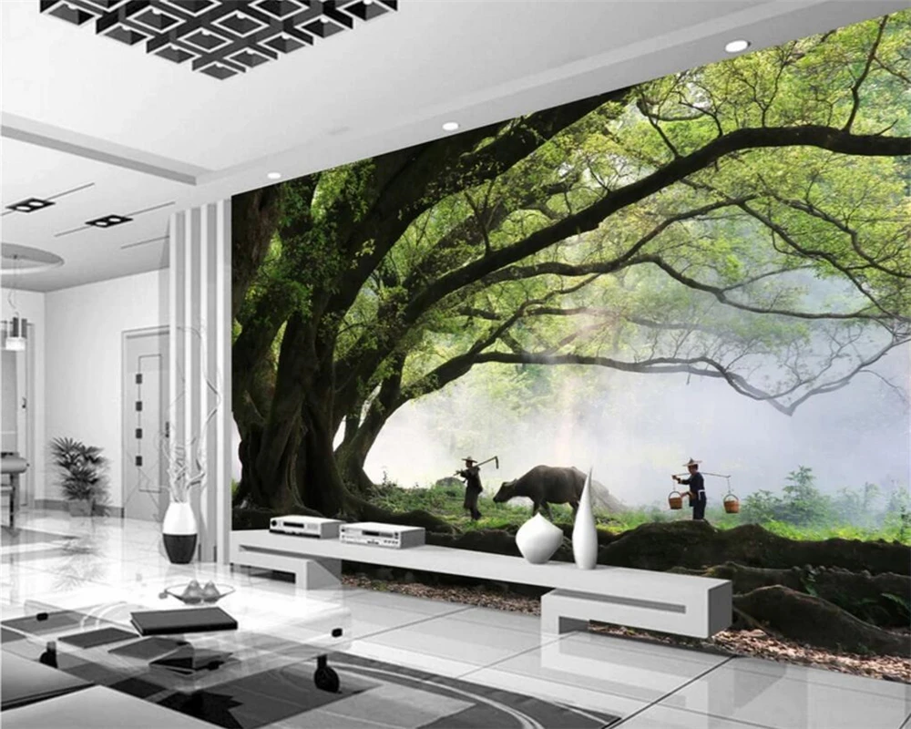 Beibehang пользовательские обои с большим деревом Весна дождь туман ТВ Фон Стена - купить