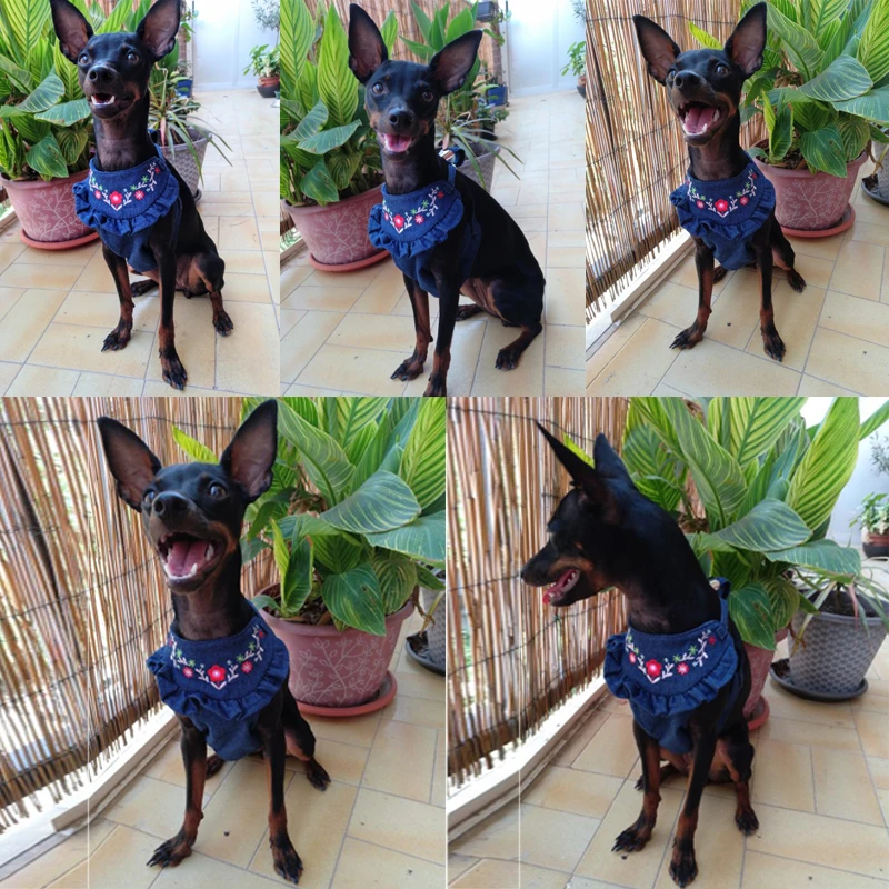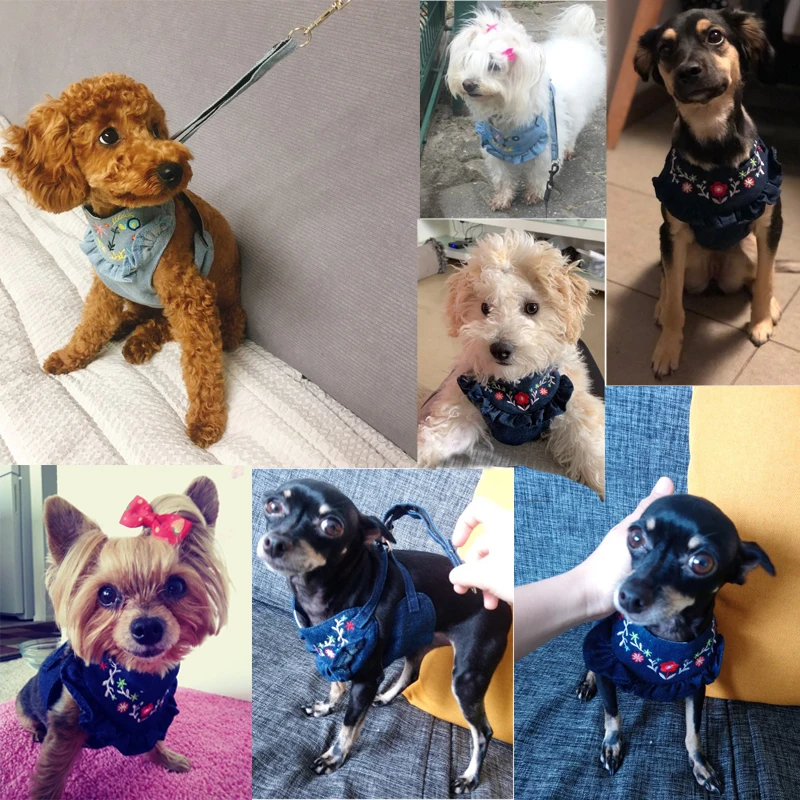 Отзывы о Джинсовый ошейник и поводок для собак вышитый джинсовый жилет маленьких щенков