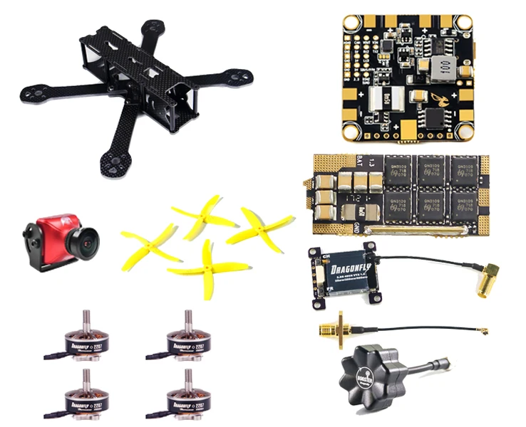 ZMR Eclipse 210mm Carbon Fiber Mini FPV Quadcopter Frame Kit * 1 set RunCam Eagle 2 FPV Camera * 1 pc Dragonfly Hurricane 2207 KV2500 Brushless Motor * 4 pcs Betaflight 32Bit 35A 2-6S BLHeli_32 ESC Dshot1200 * 4 pcs BetaflightF4 Flight Controller * 1 pc Dragonfly 5.8G 48CH Stackable Video Transmitter * 1 pc Dragonfly Transmitting Extension Cables * 1 pc Dragonfly Booster 5.8G FPV Antenna 5cm SMA * 1 pc DALPROP Q5040 4-Leaf Props * 8 pairs Accessories Bag * 1 set