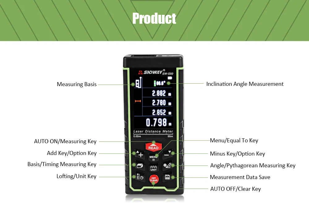 Отзывы о Лазерный дальномер SNDWAY SW S50 100M 70M 50M цифровой диастиметр ручной прибор для