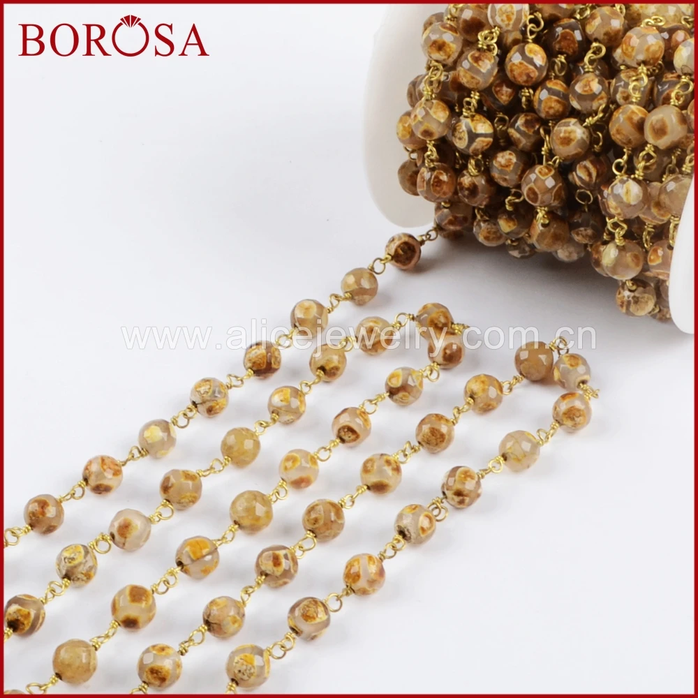 BOROSA 5 метров золотой цвет 8 мм Синий тибетские Агаты цепочка из бисера модные - купить