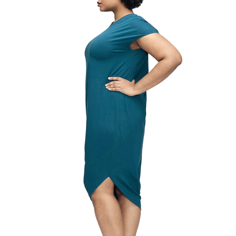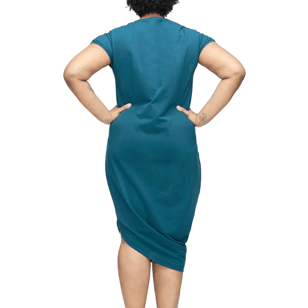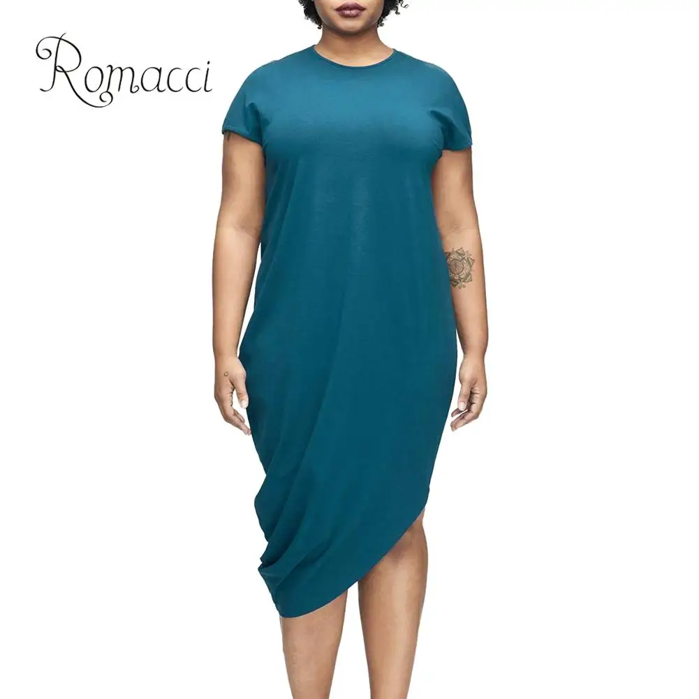 Romacci модное женское платье больших размеров XXXL однотонное повседневное летнее платье с круглым вырезом и коротким рукавом 2018 свободное платье-футболка с асимметричным подолом