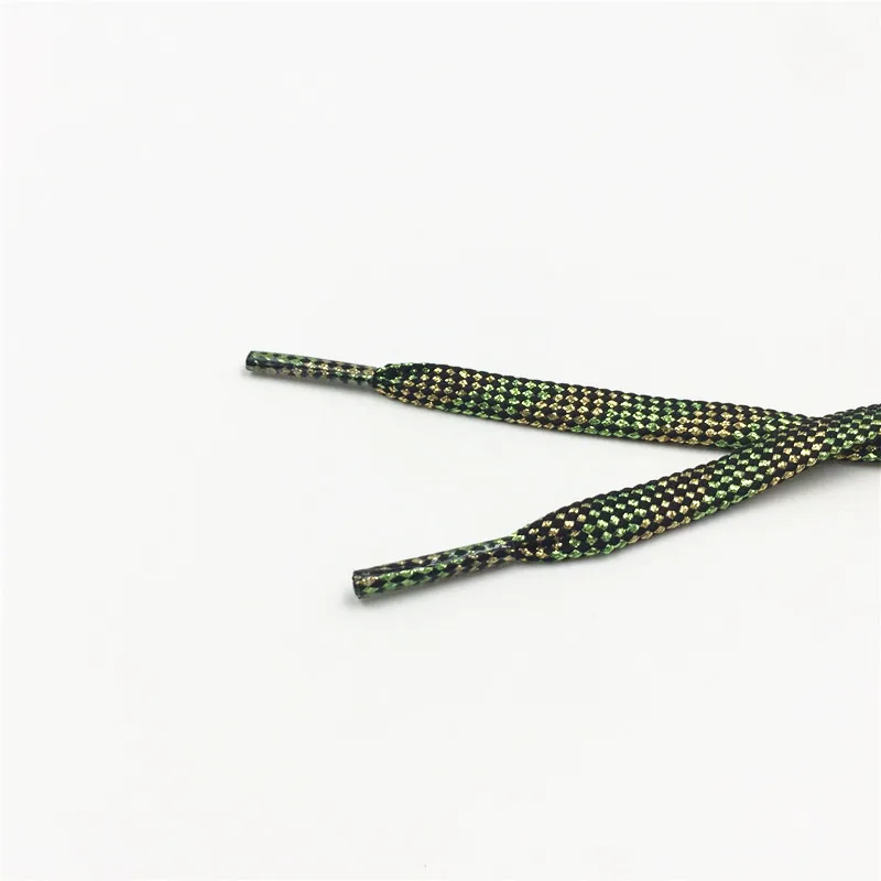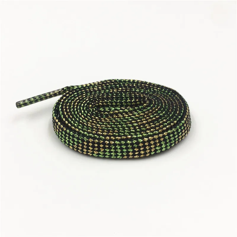 Weiou личность темно светильник зеленый шнурки 0,7 см плоская двойная Слои металлические шнурки Для женщин мужские кроссовки на шнуровке ботинки на шнурках