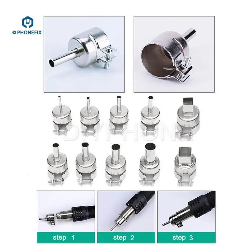 PHONEFIX 10 шт. прочный Набор сопла для горячего воздуха паяльная станция аксессуар запасные части для 850 850A 850B 852 852D