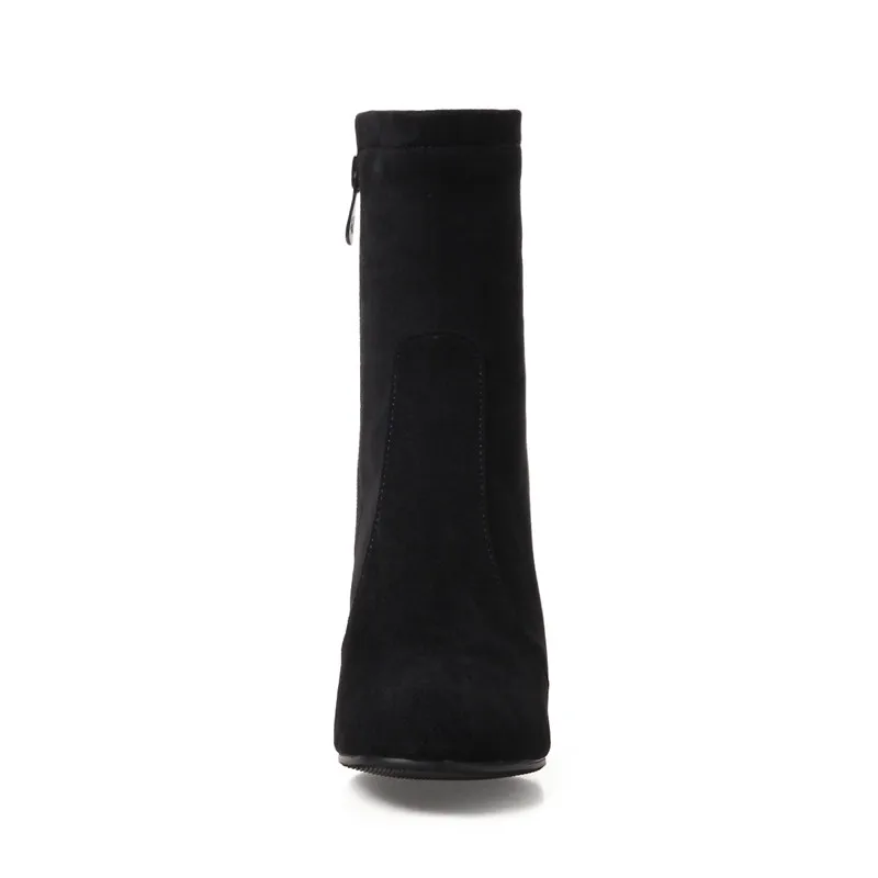 Отзывы о Ботинки женские из флока на высоком квадратном каблуке без застежек большие