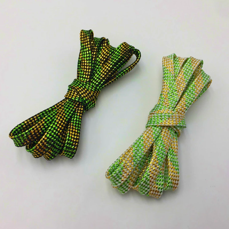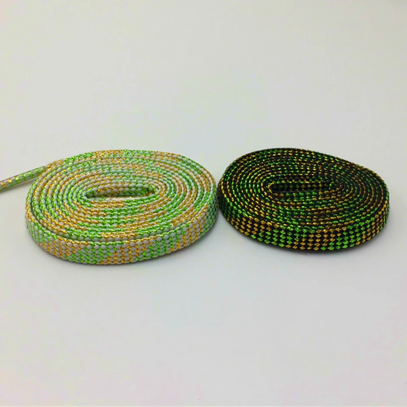Weiou шнурки 7 мм плоские зеленые темно-золотые блестящие шнурки металлическая пряжа блестящая нить 30 пар для оптовой продажи Прямая поставка