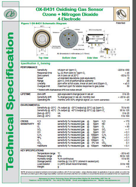 Alphasense экологическое тестирование выделенный O3 озоновый газовый датчик NO2 - купить