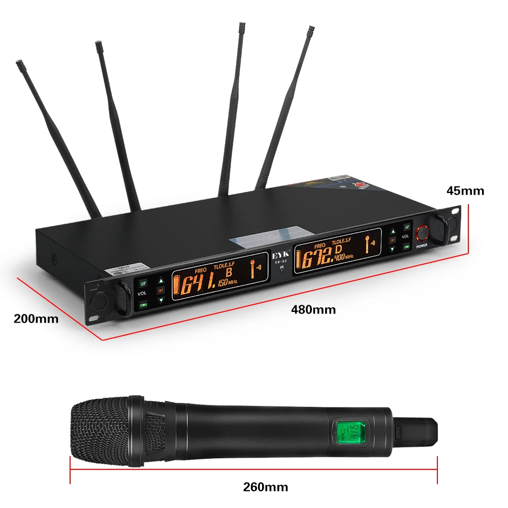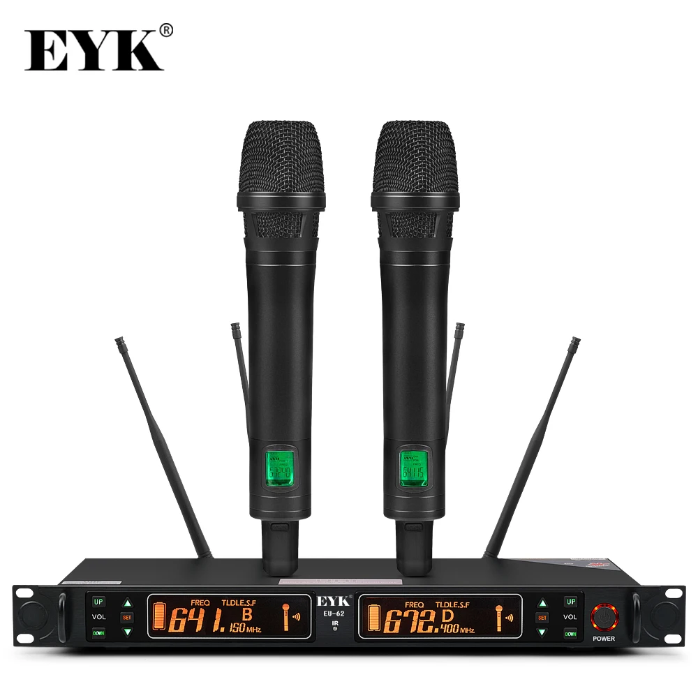 Портативный UHF беспроводной микрофон EYK EU 62 True разнообразие 2 2*100 канала - купить