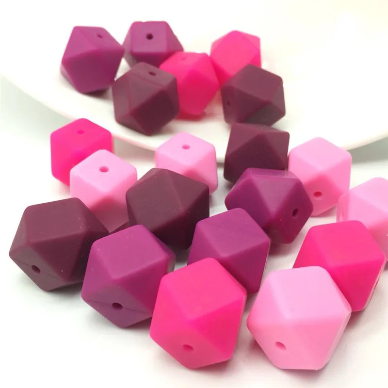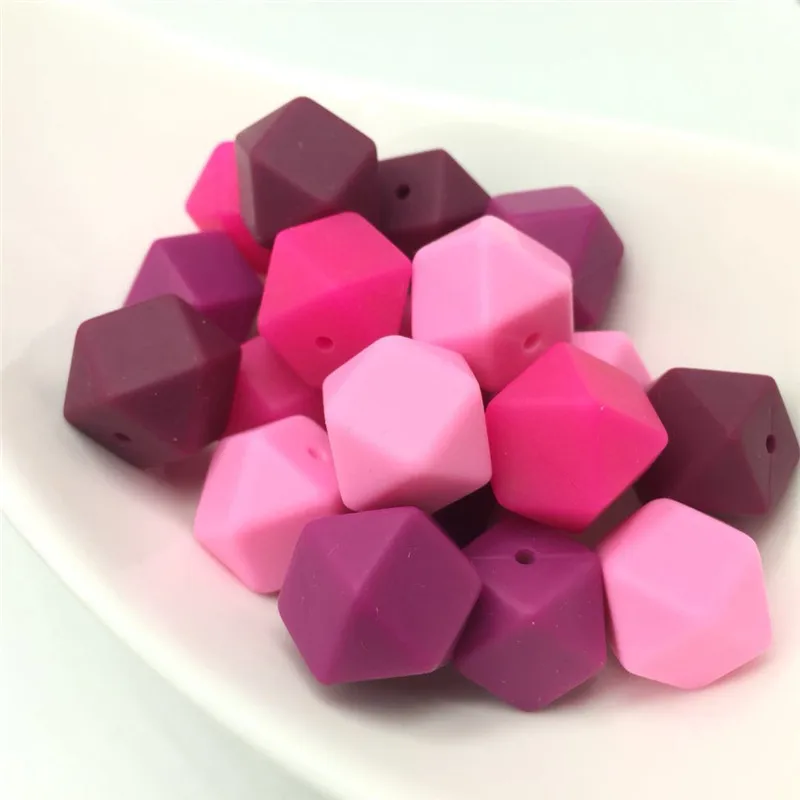 20 шт 17 мм розовые и винные цвета комбинированные силиконовые шестигранные бусины Детские Прорезыватели Силиконовые Прорезыватели Детские бусины DIY ожерелье Прорезыватель игрушки