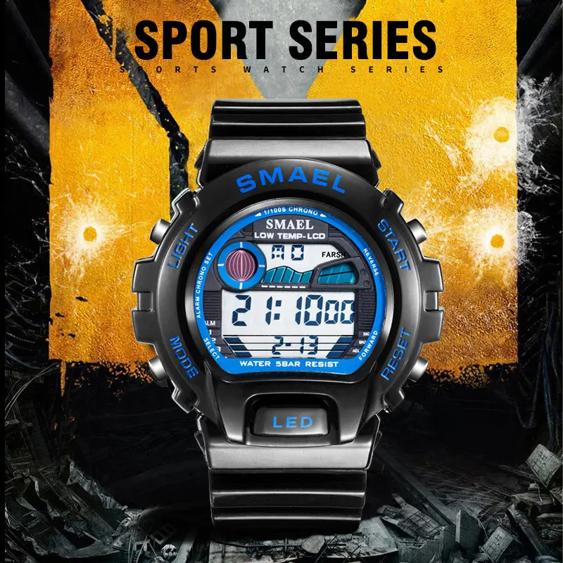 Новый бренд SMAEL мужские светодиодные цифровые военные часы, 50 м погружение плавать платье Спортивные часы Модные наружные наручные часы