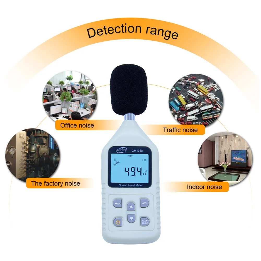 GM1358 ЖК-цифровой измеритель уровня звука измеритель уровня шума дБ, децибел-метр Диапазон измерения 30-130 дБ