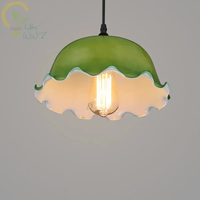 Диаметр 28 см Современный простой Ресторан подвесной светильник рябь край зеленый стеклянный подвесной светильник для гостиной кафе бар подвесные светильники