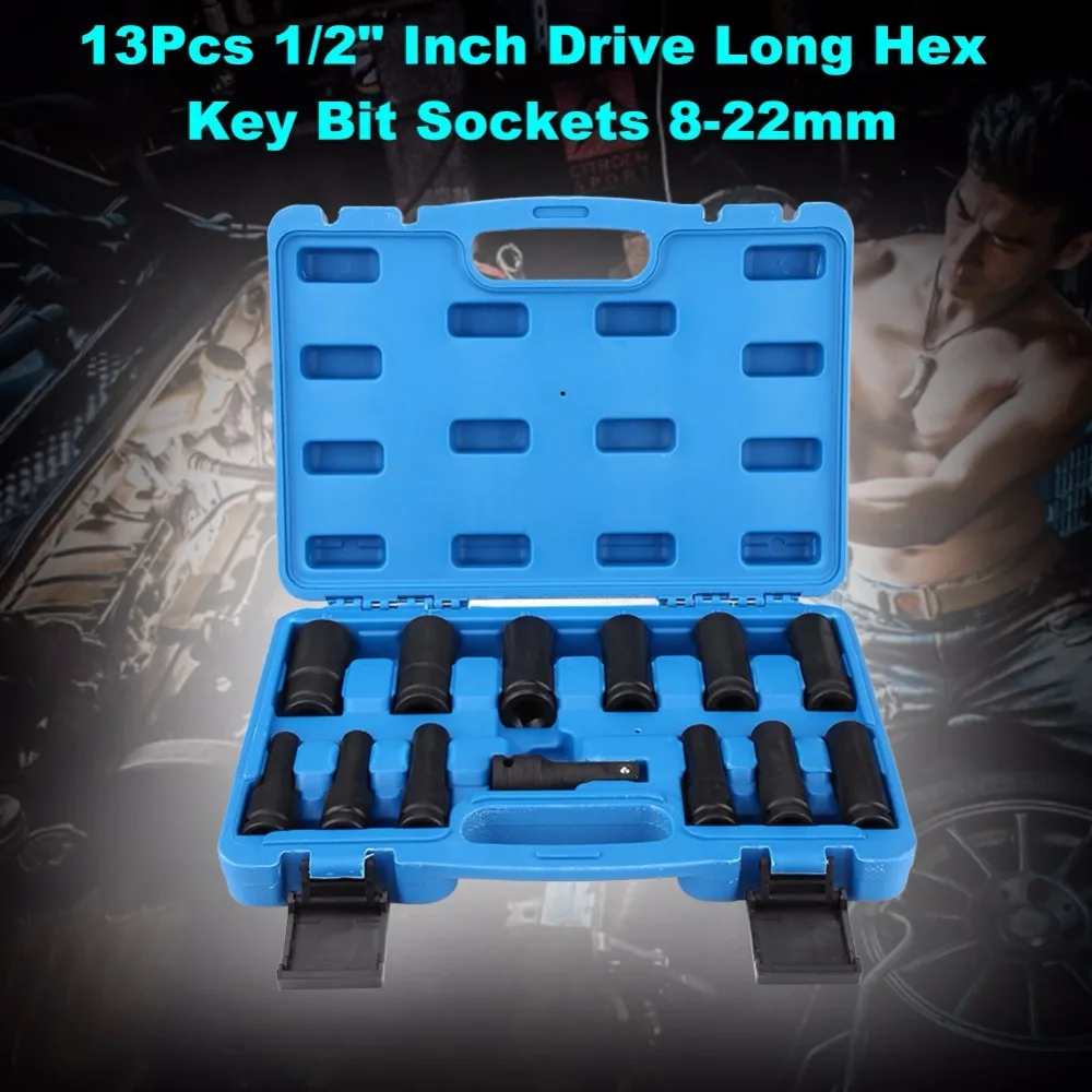 Отзывы о 13Pcs 8-24mm 1/2in Drive Allen Hex Key Bit Socket Extension Rod Lengthened Set Инструменты
