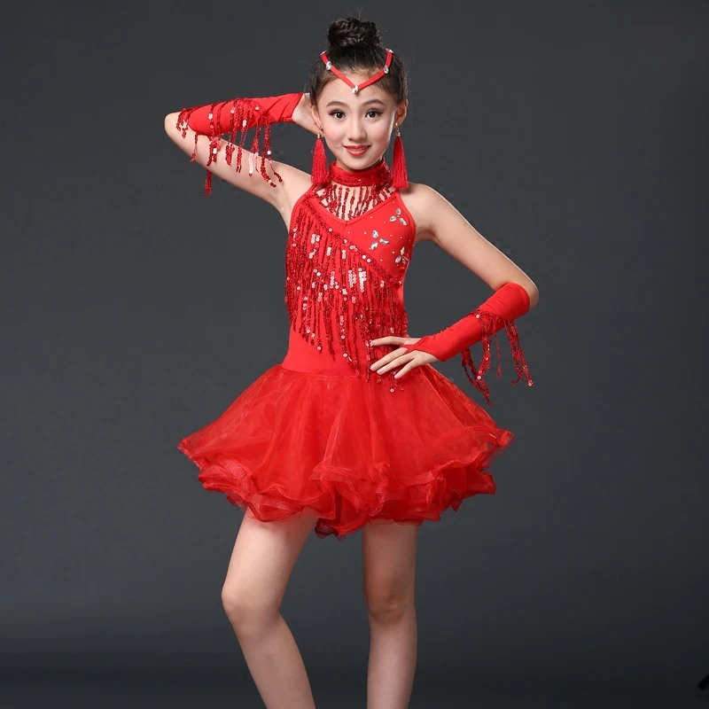 Купить Одежда для латинских танцев Новинка Детская юбка с блестками девочек Газовая