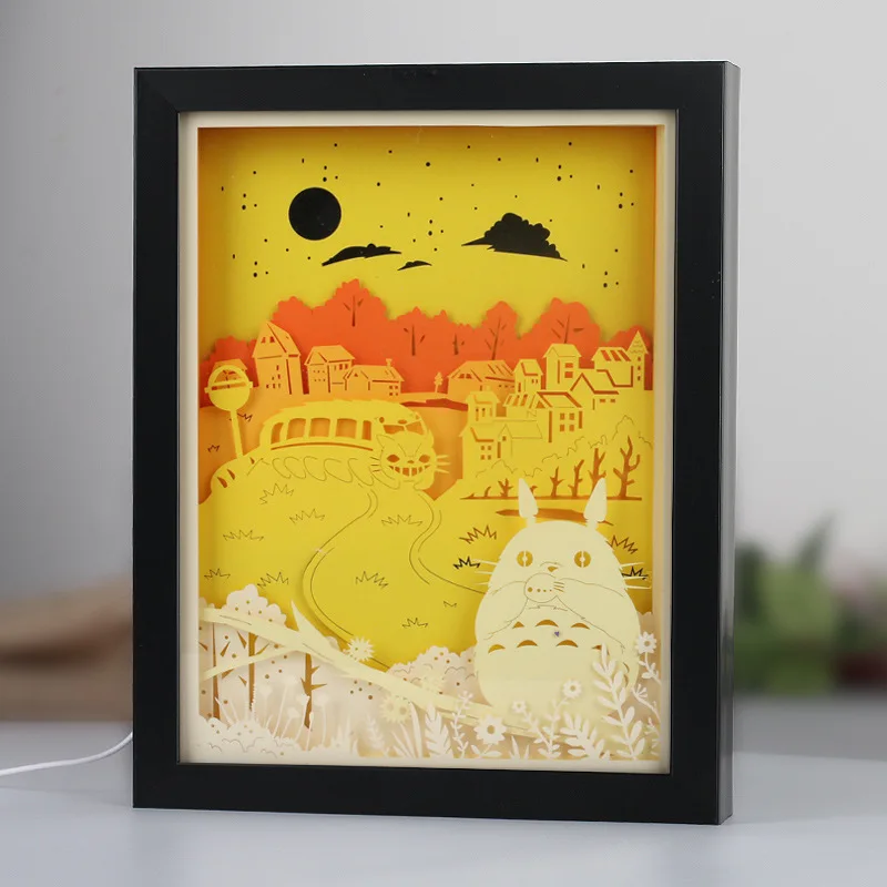 3D Бумага резьба свет Тоторо теплый белый ночные огни PS рамка светодио дный - купить