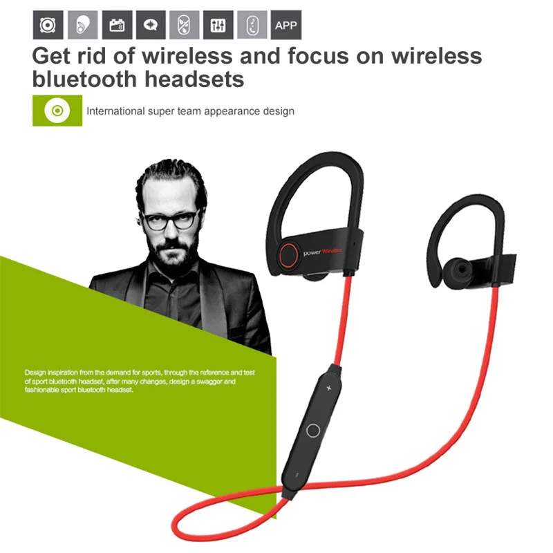 Bluetooth наушники Беспроводные спортивные наушники HD стерео наушники с защитой от пота для тренажерного зала для бега с шумоподавлением
