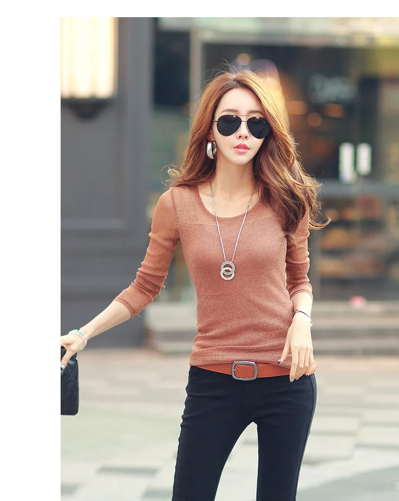 Если Вам это нравится , Пожалуйста, дайте нам Пять звезд идеальный отзыв.Отзывы о Весна-Осень 2018 новая женская футболка яркая шелковая строчка сетчатая