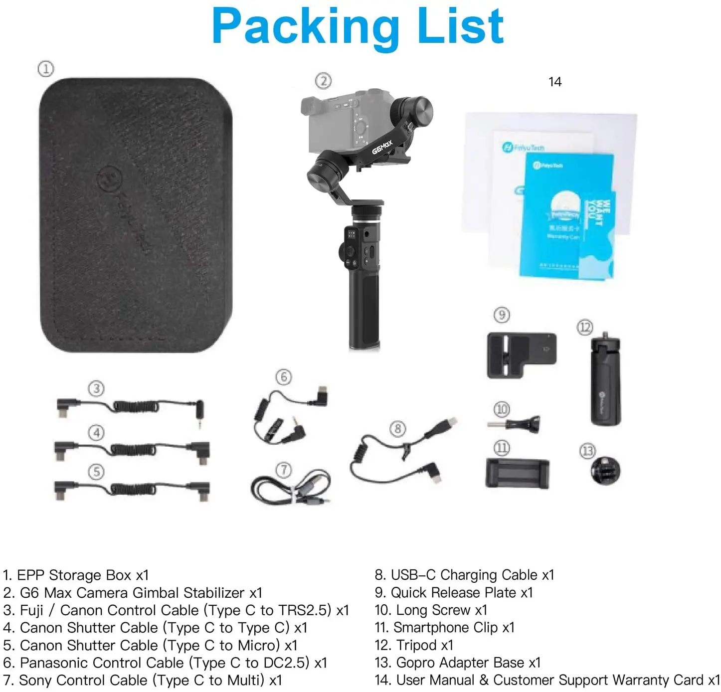 【Motor конструкция замка + Новый Quick Release система G6 макс 3 оси оснащены физической двигатель замки для предотвращения тряски, и может использоваться для фиксации 3 оси в тех случаях, когда балансировки и упаковка. С новое обновление системы быстрого выпуска, мгновенного внесения корректив вы можете установить и разобрать стабилизатор за считанные секунды без ожидания для съемки.