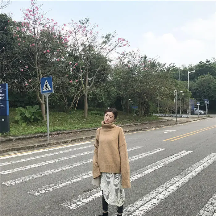 Отзывы о Однотонный вязаный свитер Женский Осенний Свободный пуловер в Корейском стиле с