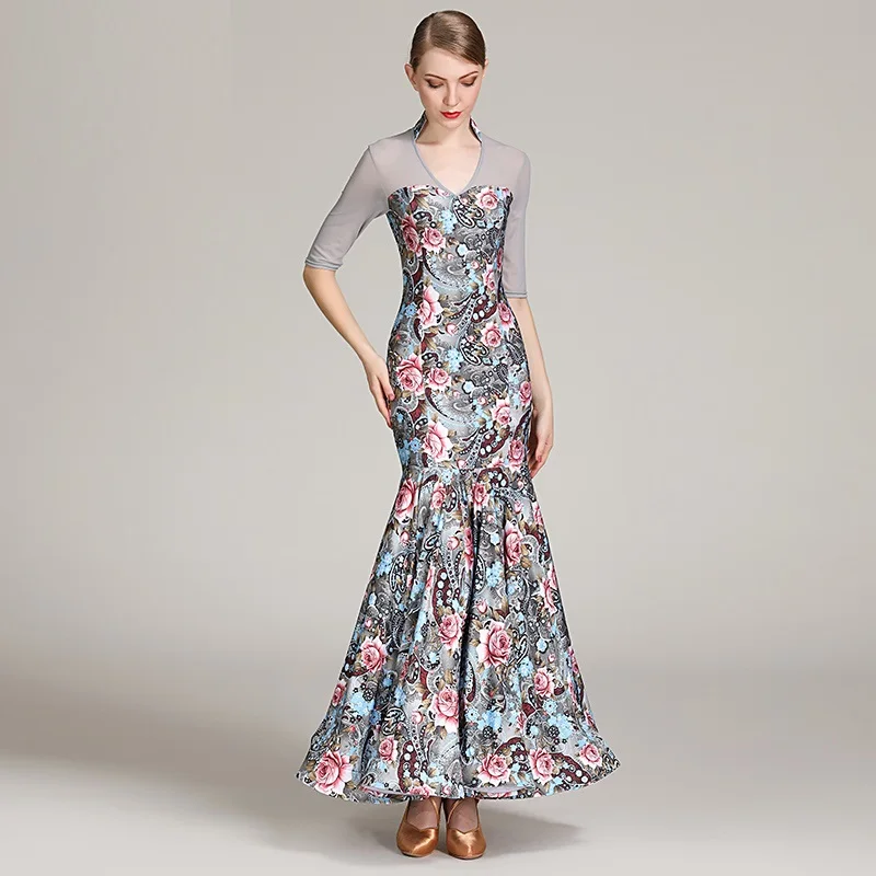 Серое зеленое женское бальное платье для танцев с коротким рукавом и v-образным - купить