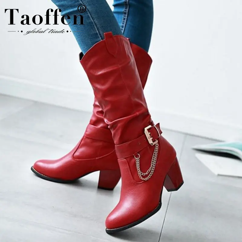 Женские сапоги на высоком каблуке TAOFFEN зимние черные больших размеров 33-47 в - купить
