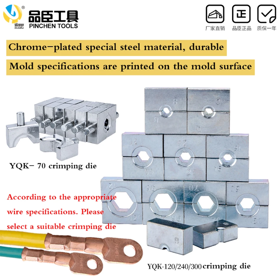Модель: YQK-70 Форма обжима: шестигранное ограничивающее давление Выход: 8T Упаковка: пластиковая коробка Ход: 10 мм Длина: 310 мм Диапазон обжима 4-70 мм2 Вес: 3,0 КГ Конфигурация формы 4/6/8/10/16/25/35/50/ 70 мм2
