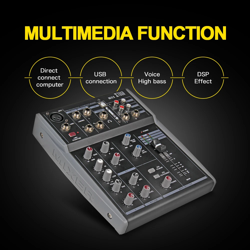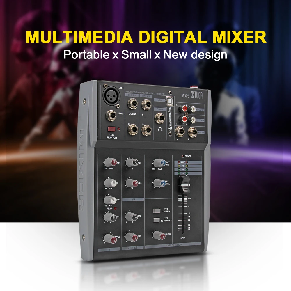 XTUGA MX5 5-канальный 3-полосный микшер микшерный пульт с USB XLR линейный вход 48 В - купить