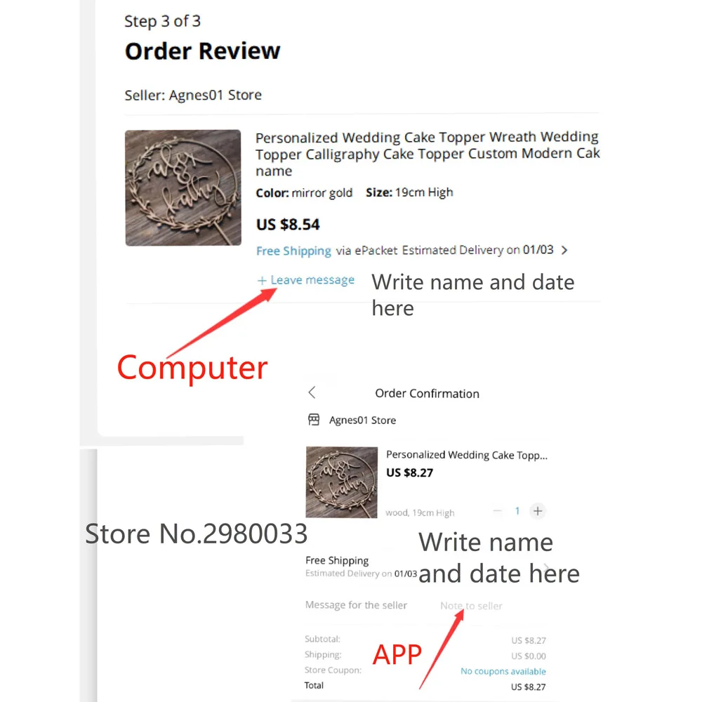 Когда вы размещаете заказ, пожалуйста, укажите пользовательское имя и дату.