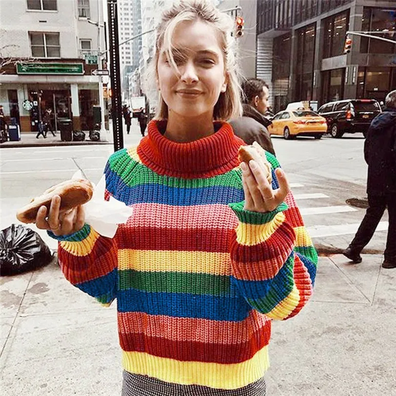 Шикарный Радужный пуловер для женщин 2018 водолазка женский свитер вязаный pulover feminino manga longa inverno Прямая поставка # F #40OT5