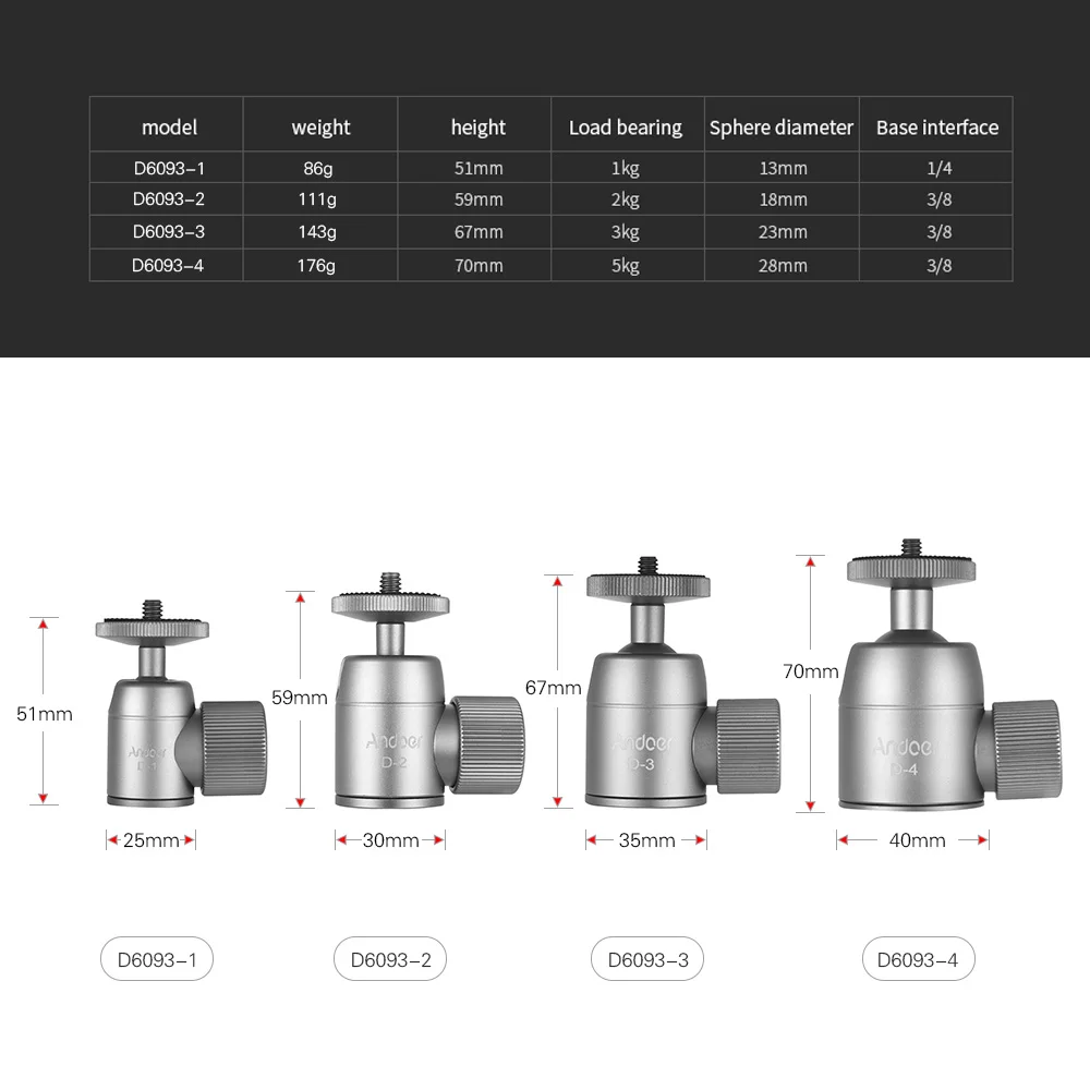 Простота в использовании:С винтом 1/4 "и винтовым отверстием 1/4", удобно устанавливать и снимать, идеально подходит для всех видов съемки.